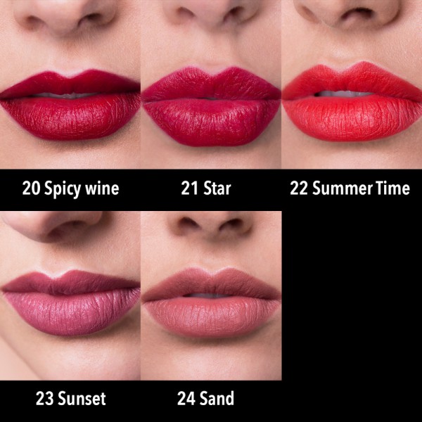 Color intenso y textura cremosa Acabado semi-mate aterciopelado Larga duración sin sentir sequedad