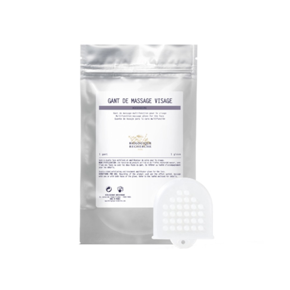 Guante de masaje específico para la aplicación de los productos de tratamiento. Compuesto por dos caras, el punto más grueso activa la circulación y el punto fino facilita la penetración de principio activo.